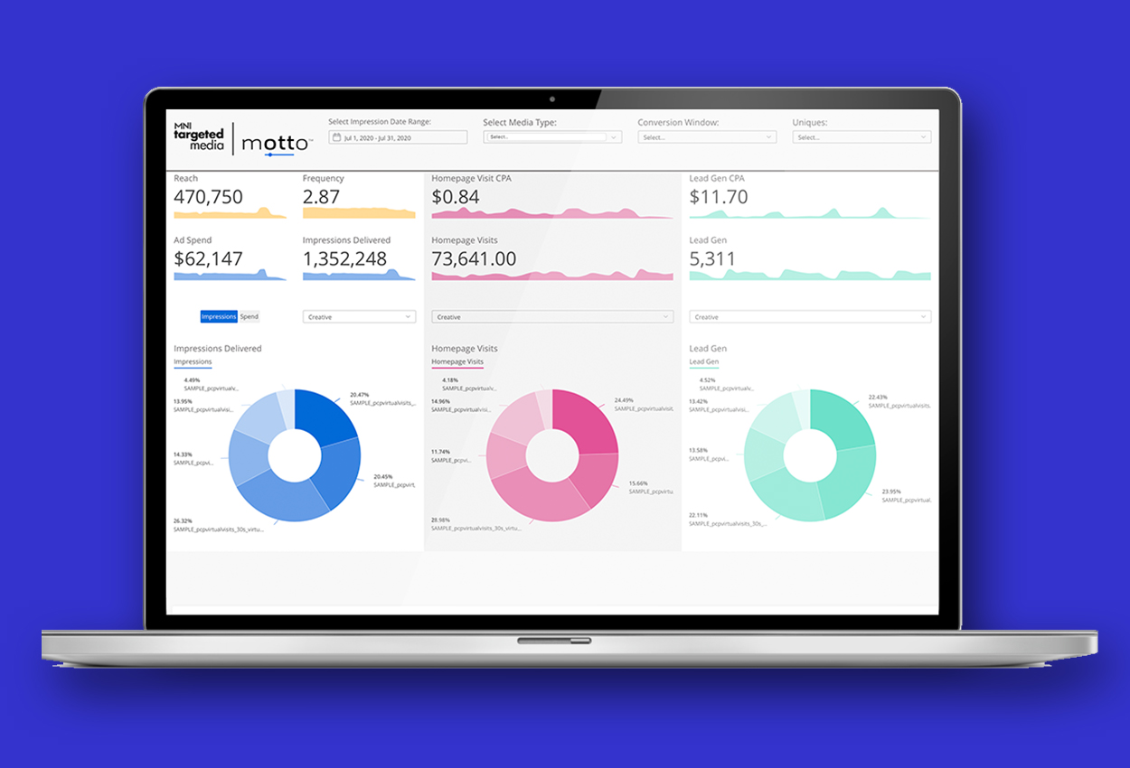 Proprietary platforms—including Optics for transparent reporting and Motto for advanced attribution—support campaign analysis and ROI tracking from start to finish.