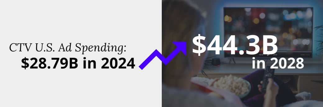 CTV advertising has exploded in recent years. U.S. ad spending in this space reached $28.79 billion in 2024, and it’s projected to climb to $44.3 billion by 2028. This surge reflects the value advertisers place on the ability to reach targeted, engaged audiences across streaming platforms. CTV combines the storytelling power of traditional TV with the precision of digital targeting.