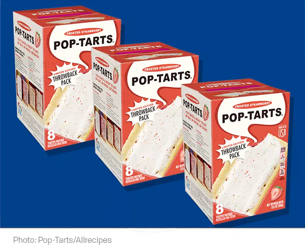 Pop-Tarts in 2023 came out with a “Limited Edition Throwback Pack” that honors the treat’s 1960’s debut. The throwback Frosted Strawberry Pop=Tarts packing is inspired by the original packaging, but it’s not identical. One of the reasons for this include that FDA requires certain messaging on packaging now like nutrition, ingredients, and allergen information. But the packaging definitely has that retro, mid-century vibe to whet the appetites of consumers, who may be forgot about how much they enjoy the snack.