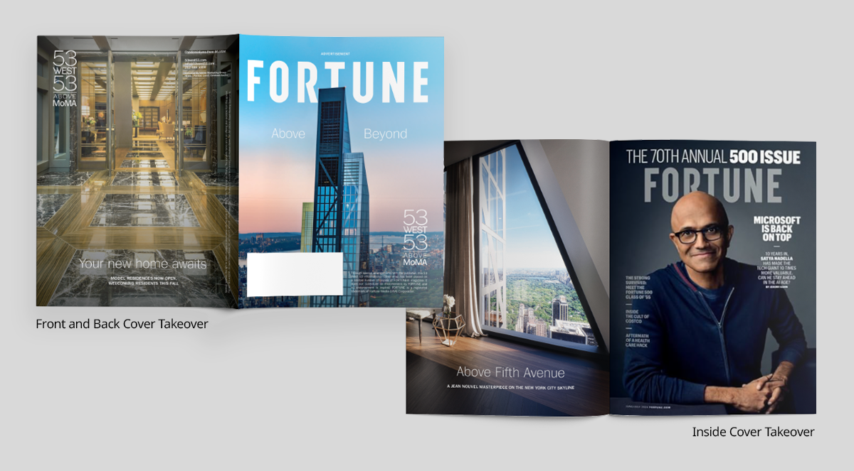This is a Cover Wrap, a custom ad wrapped around a top-tier magazine, making it the first thing your audience will see.